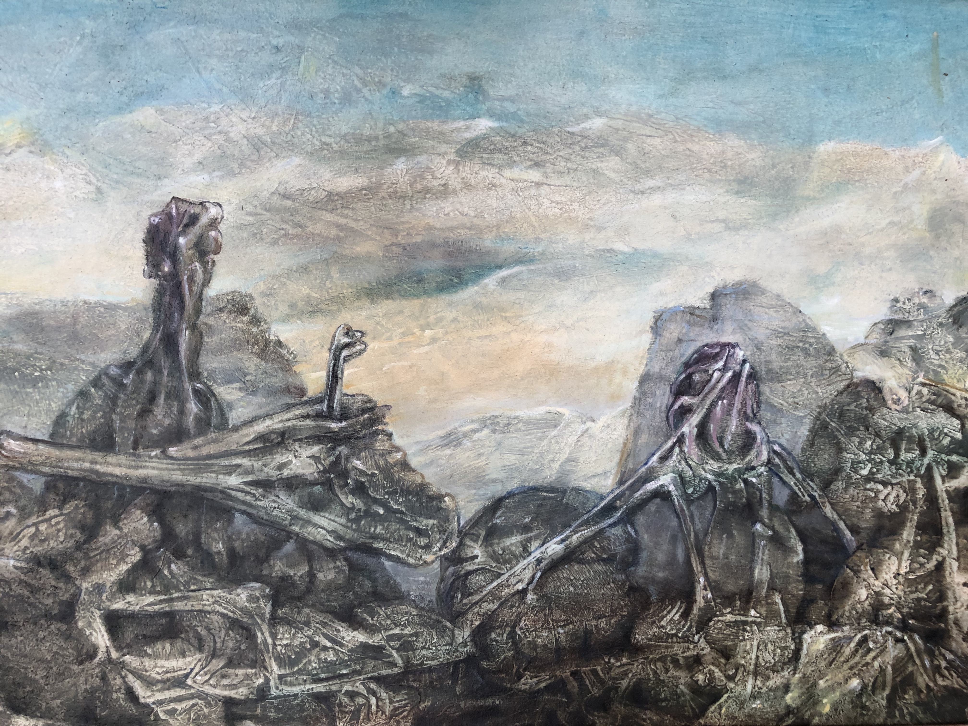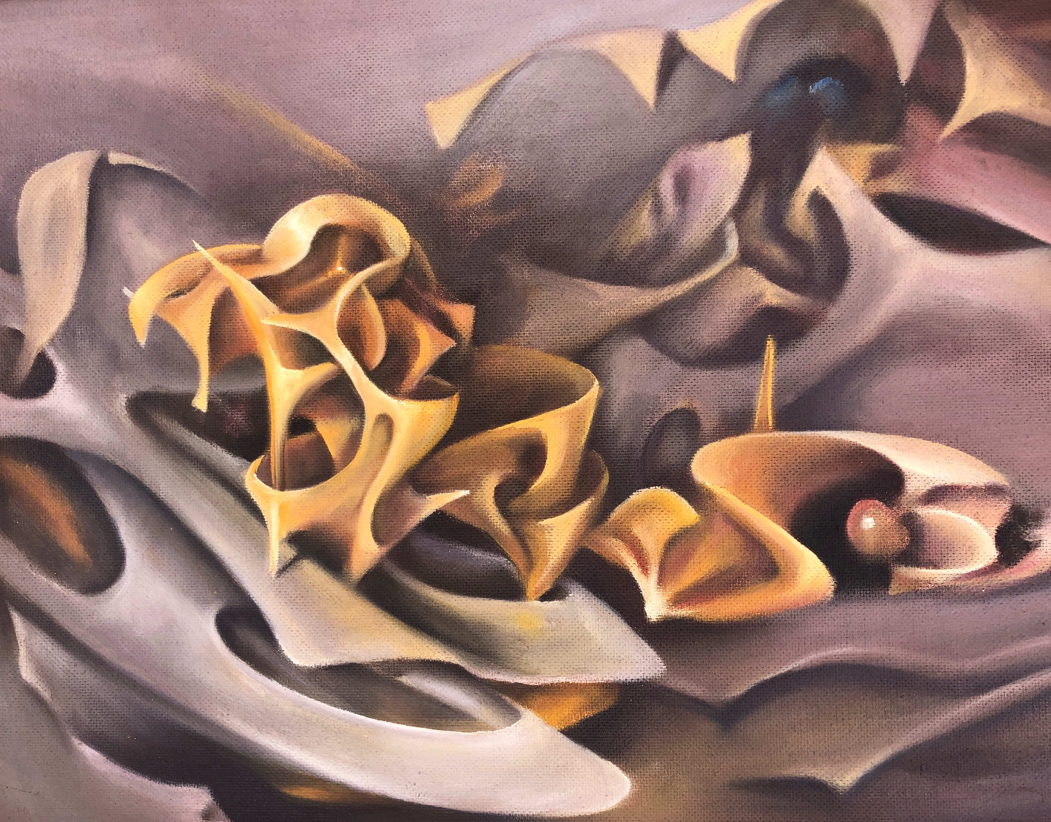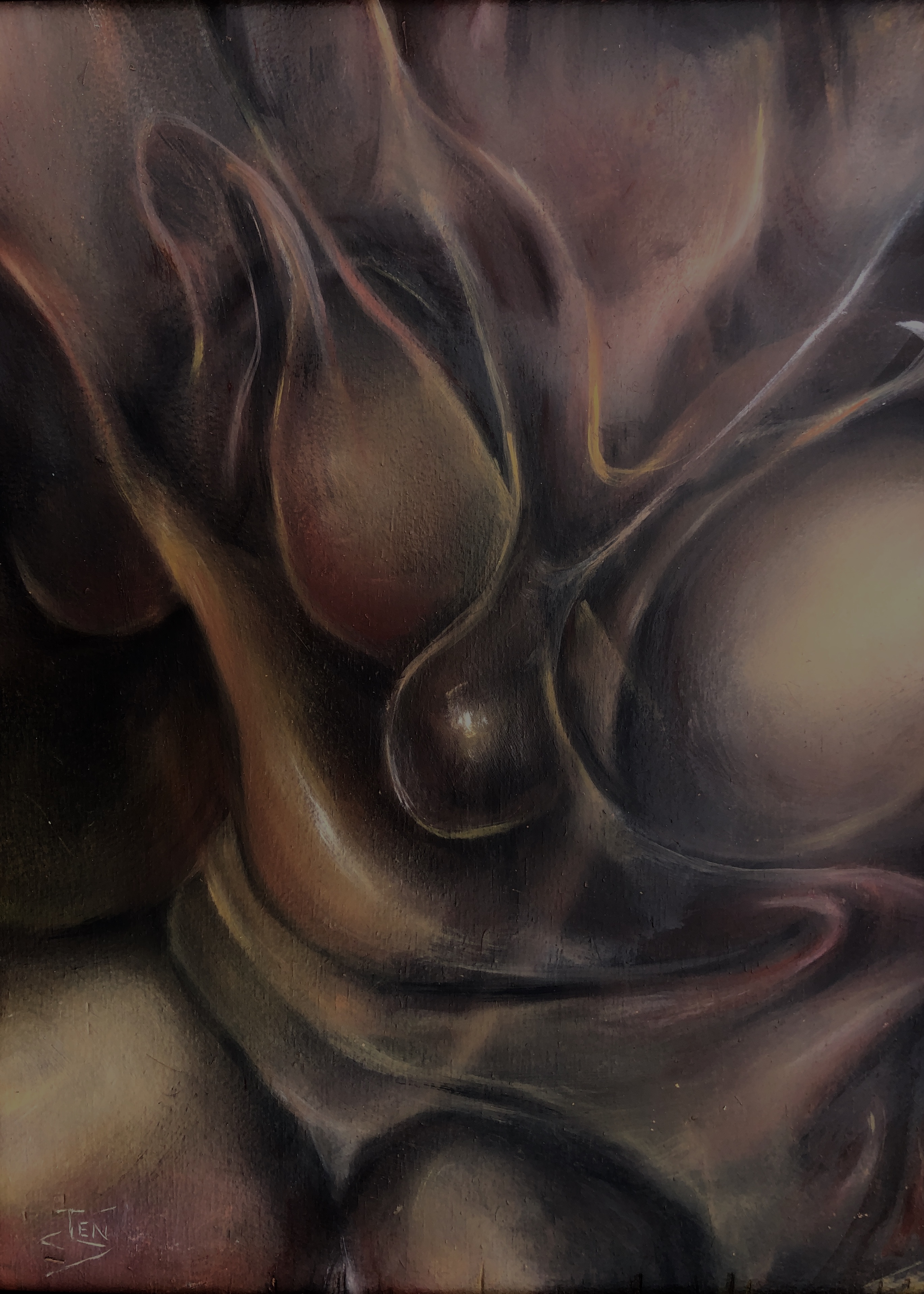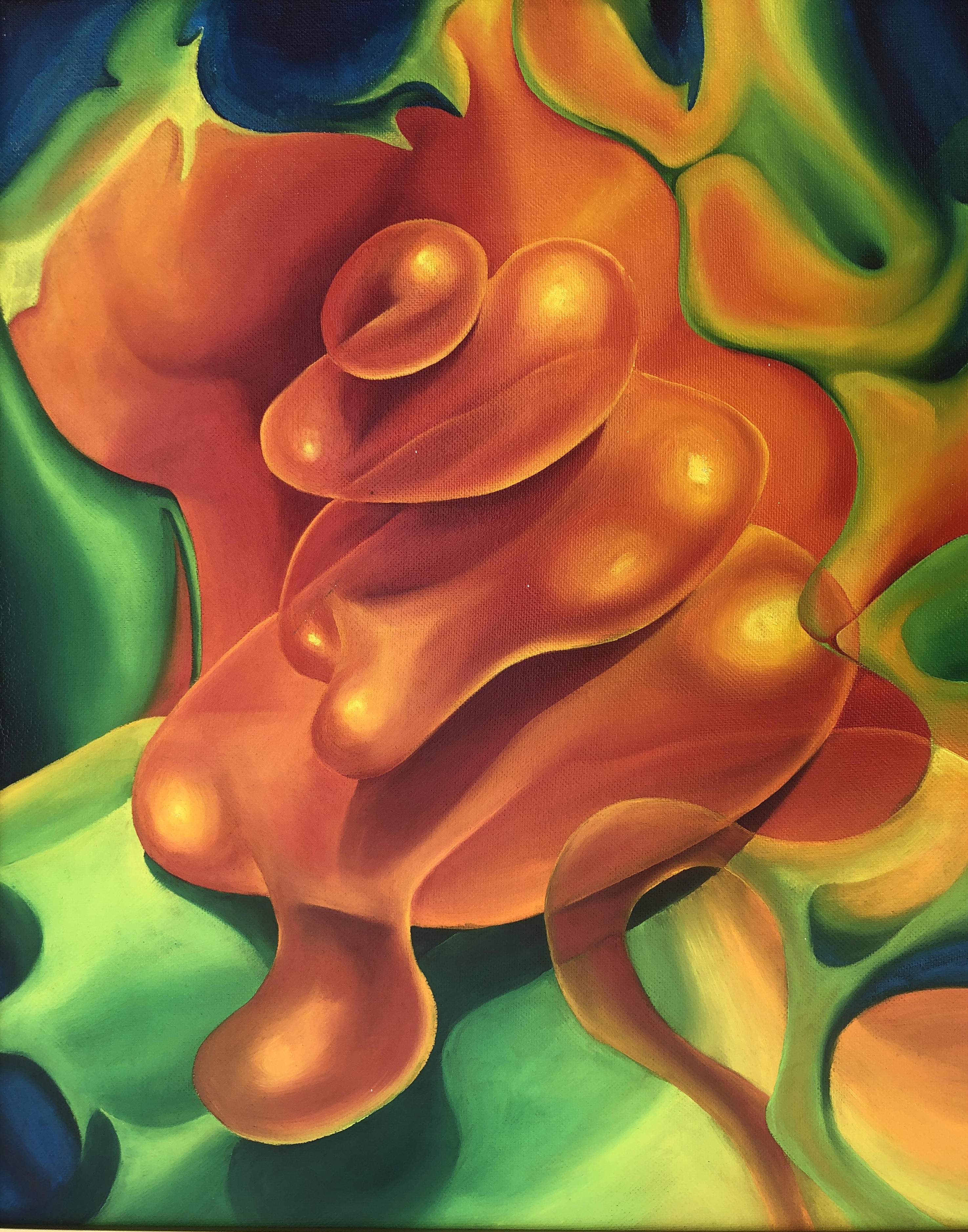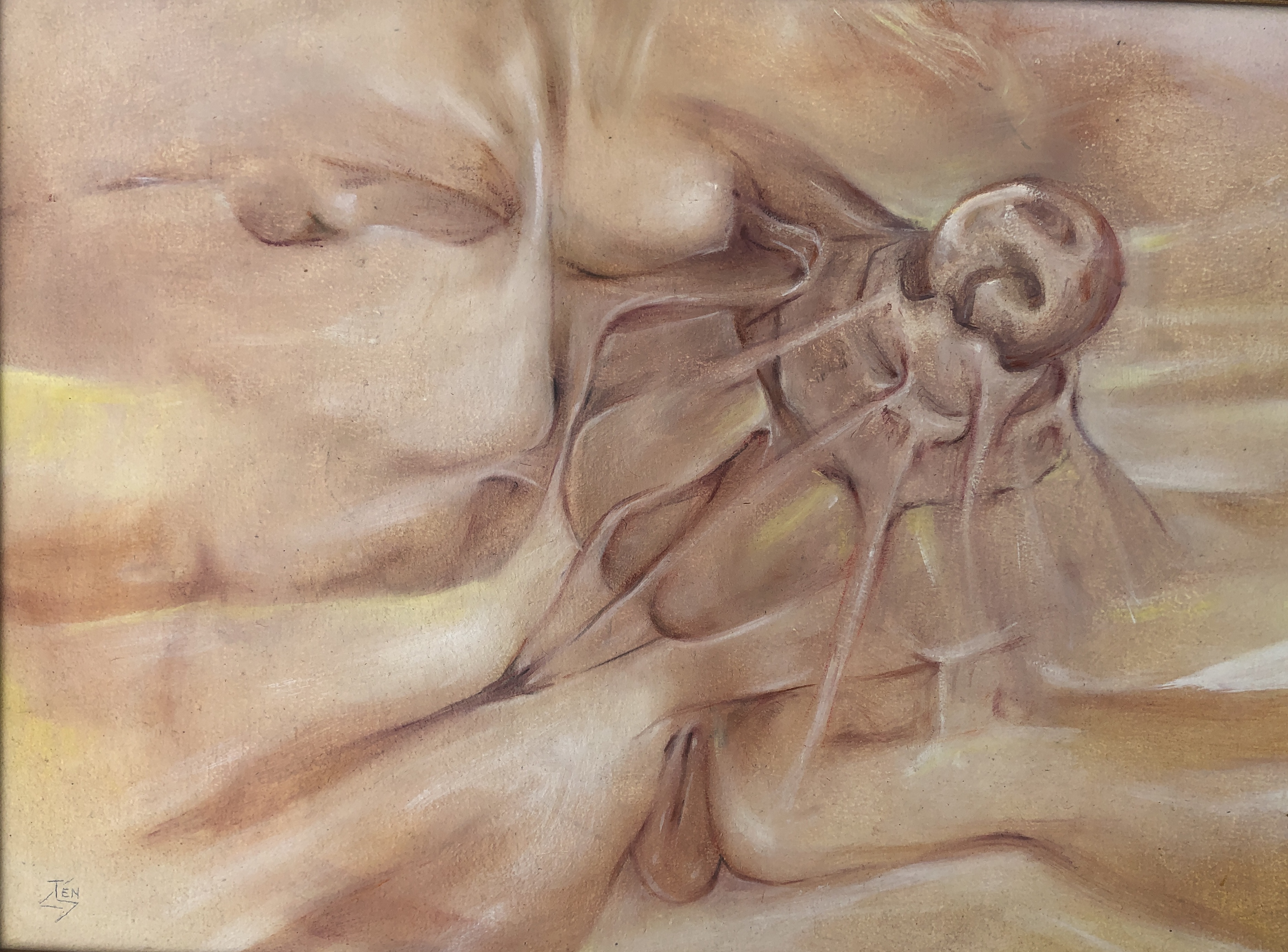 The paintings of the last decade depict mainly biomorphic phenomena, evolutionary forces and propagational drives forming the basis for gender interaction. There is a lot more to this work than the superficial erotics of sexuality.